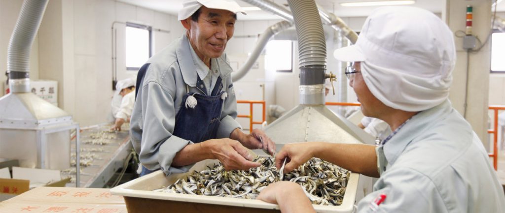 にぼしを産地より買い付けて、自社工場にてリパックを行っています。「あんしん」「健康」「おいしい」にぼしをお届けすべく、お客様目線で商品開発に力を入れています。原料の調達力と全国への販売網がサカモトの強みです。